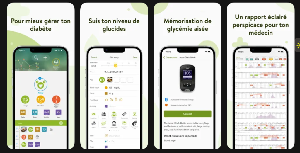 Deuxième exemple : les applis de self-management du diabète type « MySugr » ou applis de « coaching diabète”. Ici, l’utilisateur enregistre sa glycémie, ses repas, son activité physique et se voit proposer des objectifs quotidiens ou hebdomadaires, sous forme de défis et de missions. Un univers graphique sympathique, des feedbacks instantanés et parfois même un “personnage” à nourrir ou à faire évoluer rendent la maladie moins abstraite et un peu moins pesante.